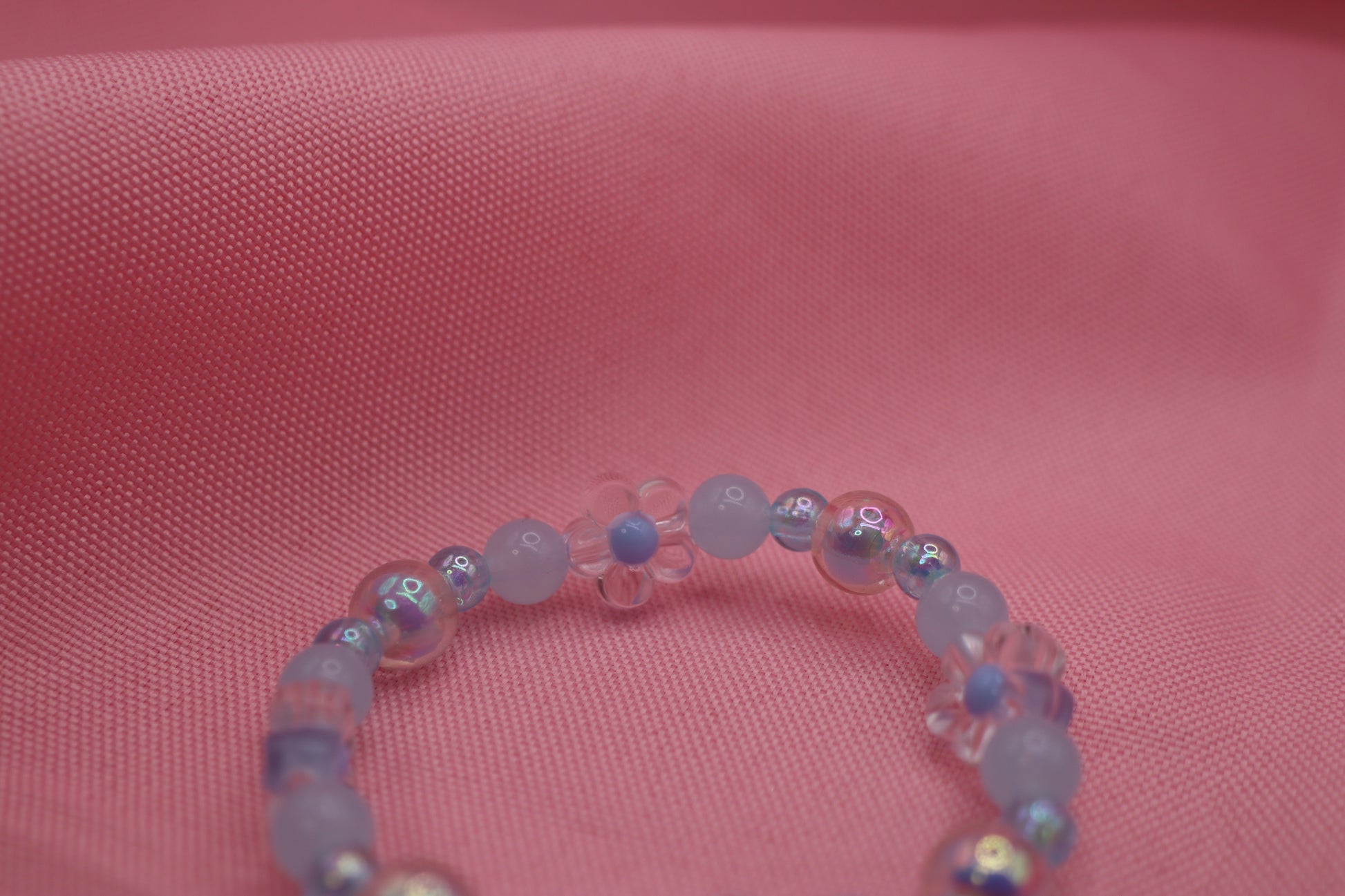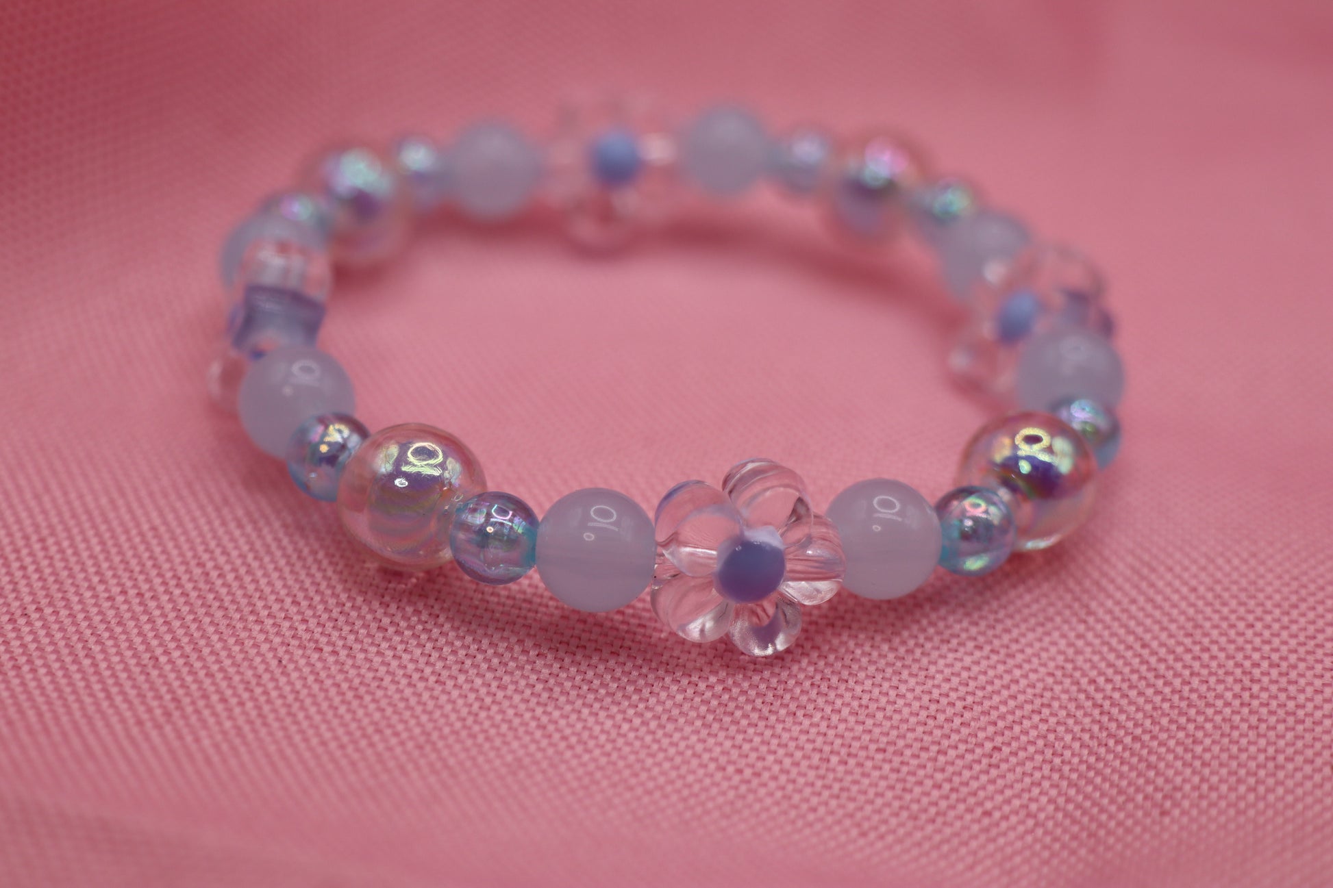 A refreshing powder blue brace with gem like beads and floral motifs.
